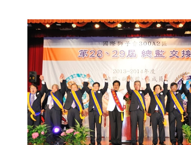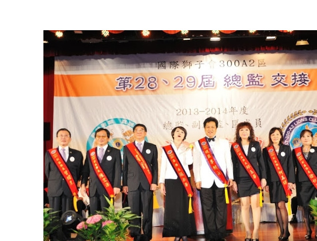 國際獅子會300A2區,第28,29屆總監交接暨2013~2014總監,副總監及區成員就職典禮,副總統吳敦義及台北市副市長等貴賓到場祝賀,現場出席踴躍盛況空前。
