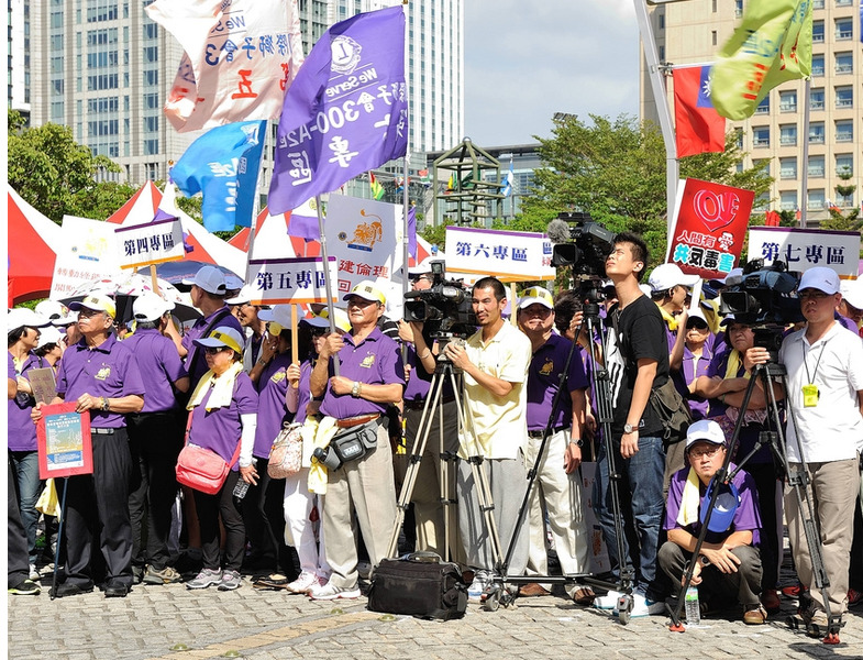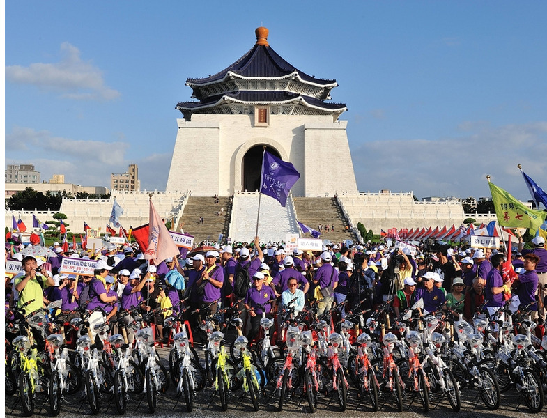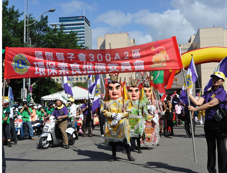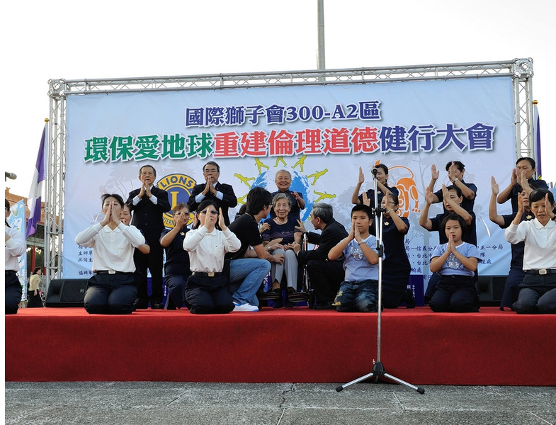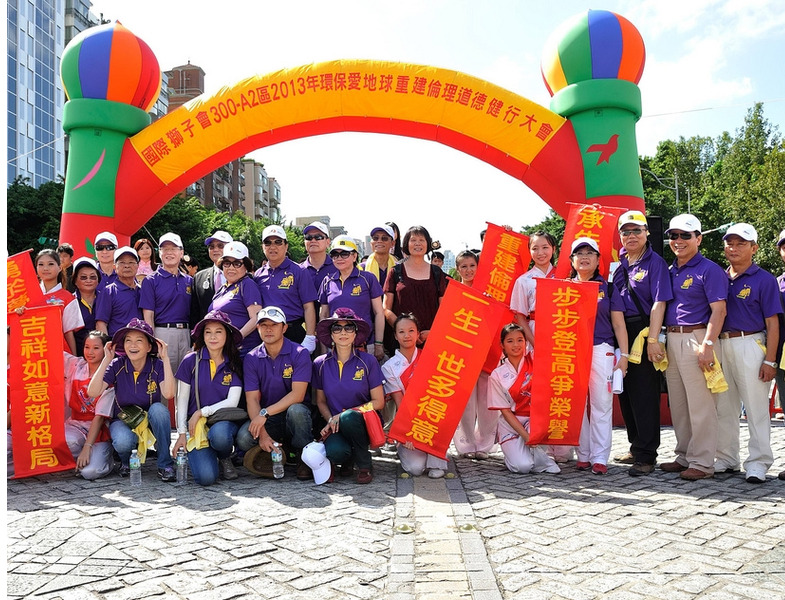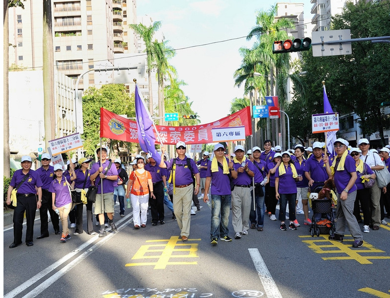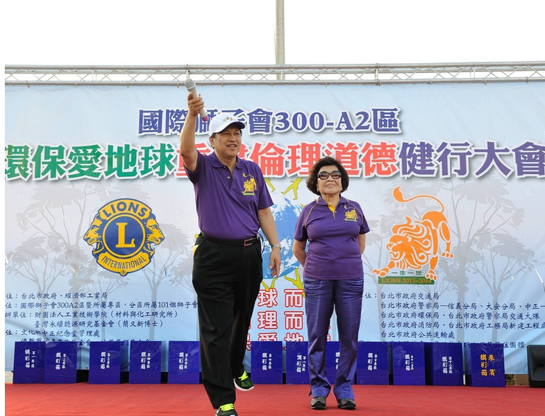 【台北訊】由影視界知名導演今年擔任國際獅子會300A2區總監李朝永發起,由該區文創長周遊資深媒體製作人擔任總策劃、執行長黃秀榕秘書長,於10月13日下午2時起至6時30分(分別在市府市民廣場及中正紀念堂民主大道)進行一場『環保救(愛)地球—重建倫理道德』健行大會,主辦單位A2區3600位獅友一人帶三人上街頭,以柔性、溫馨、嘉年華會方式,舉行健行大會遊行活動.(攝影:鄭朝進.王銘修)