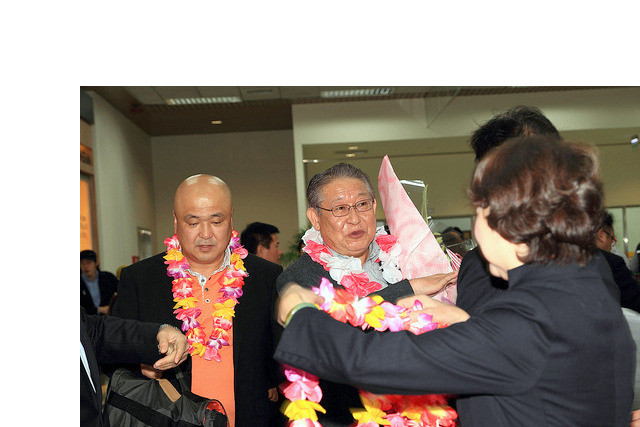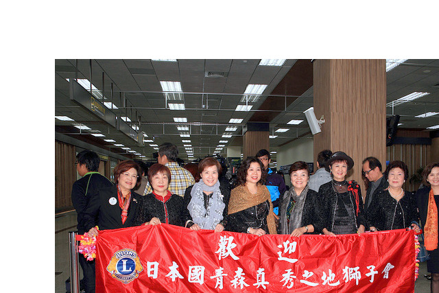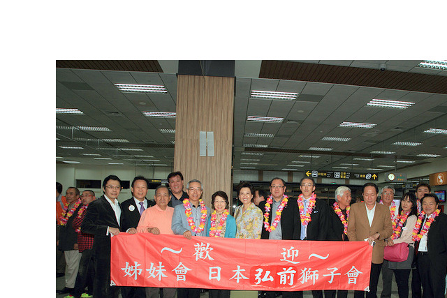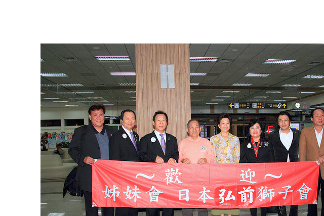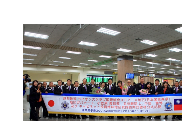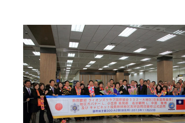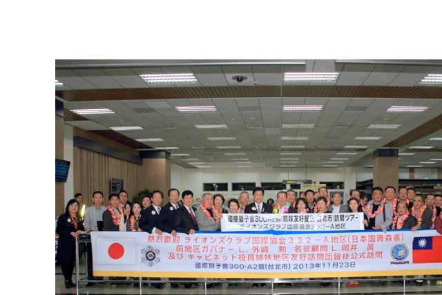 日本332A姊妹區-公式訪問:國際協會332A地區親善訪問團來訪一行64人[分三批]第一批.小笠原義見都地區總裁帶隊,李朝永總監親帶正副內閣至松山機場接機。