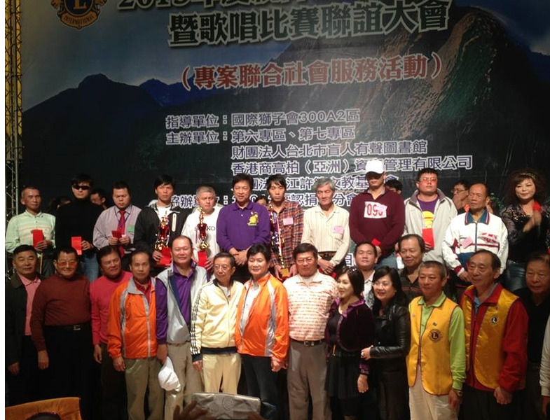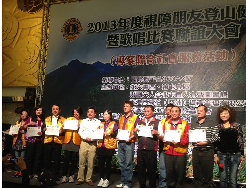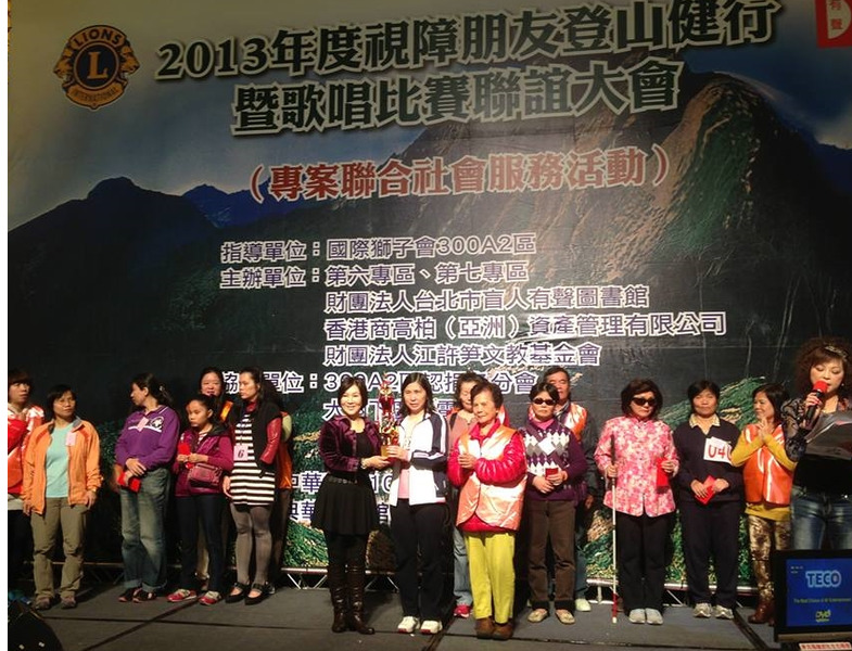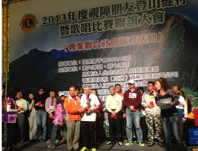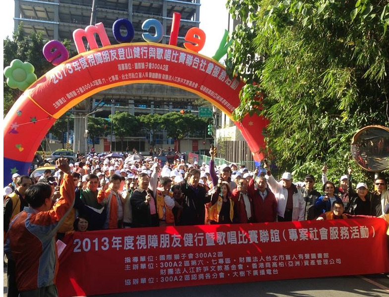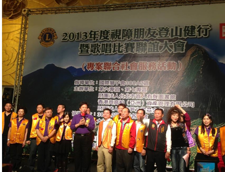 2013台北有聲圖書館與本區第六及第七專區合辦專案社會服務,特於12月1日假大直典華宴,舉辦視障朋友健行與歌唱比賽聯誼,這是有聲盲胞一年一度的大型活動,國際獅子會300A2區亦鼎全力支持,盛況空前.(攝影: 江哲和)
